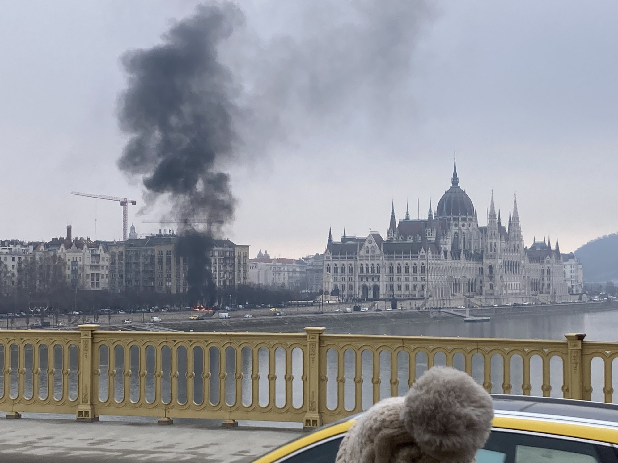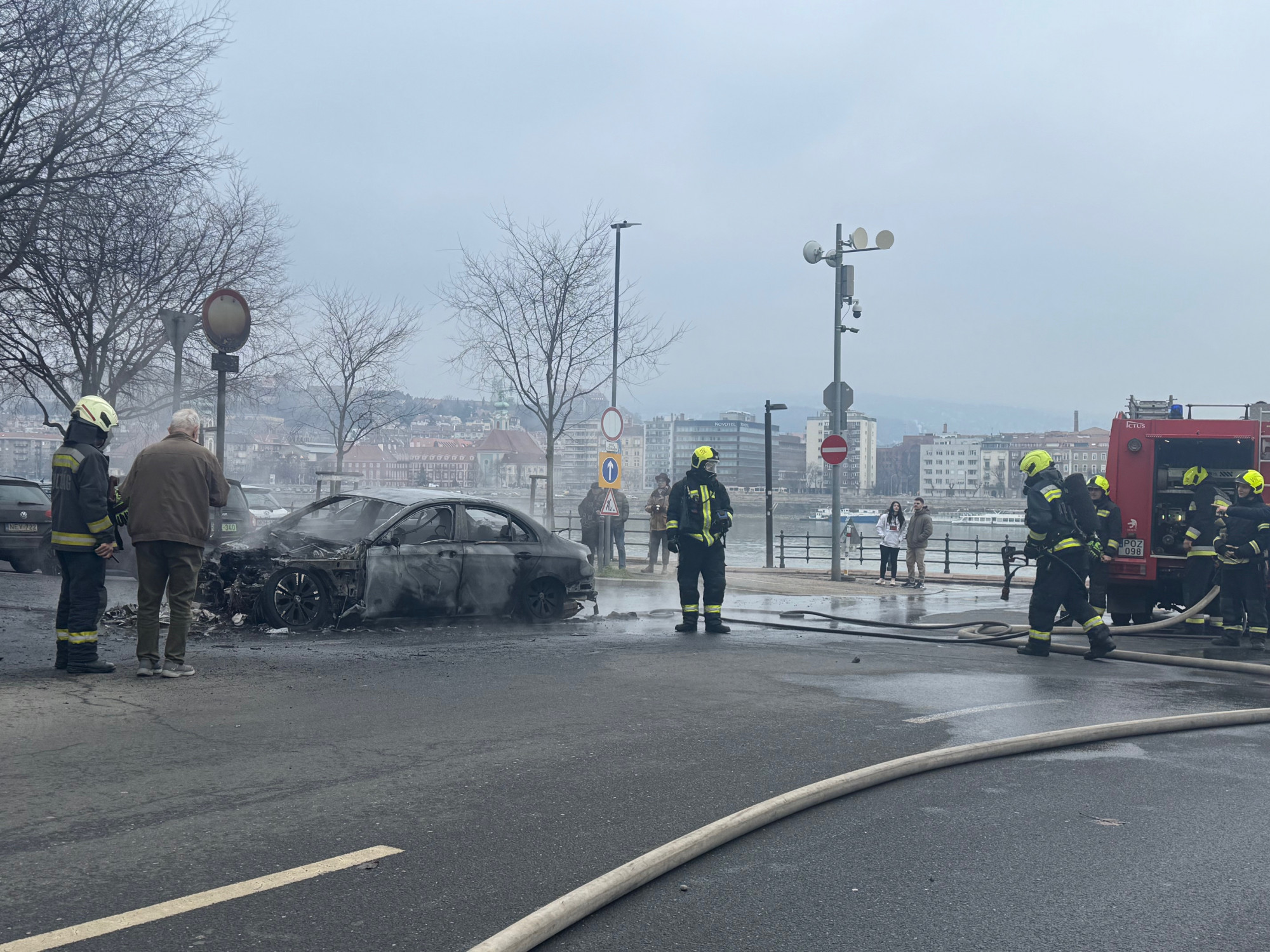 Nagy füst kíséretében lángolt egy autó a Jászai Mari tér és a Parlament között, a Markó utca és az Olimpia park sarkán. Tudósítónk szerint mentő is járt a helyszínen.