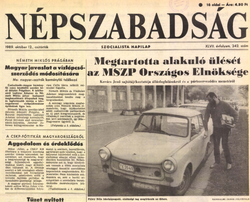 Öt nappal voltunk az állampárti MSZMP utolsó kongresszusa után, ahol egy új párt megalapításáról döntöttek. Ez lett a Magyar Szocialista Párt, a trabantos férfi pedig az új párt országos elnökségének alakuló ülésére sietett.