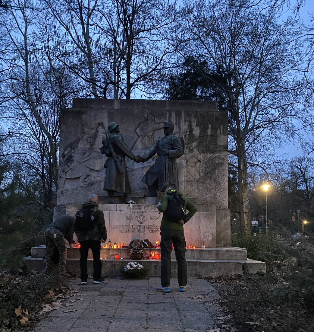 Ezzel szemben a Várban gyülekező, második világháborús egyenruhákban, jelképekkel és katonai öltözetben megjelenő résztvevőknél nem lehetett hasonlóan átfogó rendőri intézkedést látni. A két csoport létszáma eleve nem volt összehasonlítható, és mivel az ellentüntetőket nem engedték fel a Bécsi kapu térre, végül nem alakult ki összetűzés.