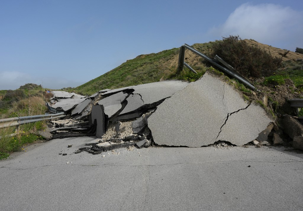 Elsőrendűnek számít Niscemi elszigeteltségének megszüntetése: a városba vezető országutak többségén beszakad a burkolat, ezért sürgős intézkedésnek minősítették legalább két közlekedési útvonal helyreállítását. (MTI)