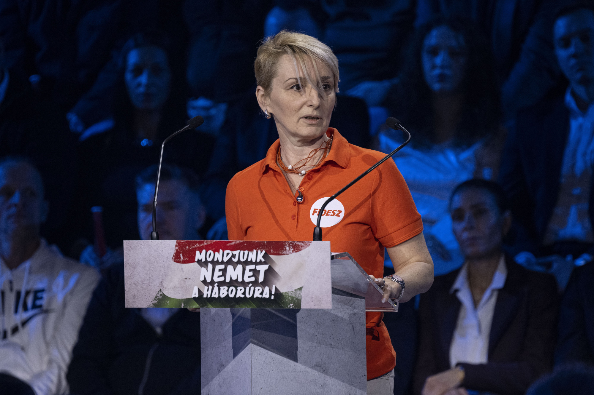 Erős faék egyszerűségű beszéde végén azt is elmondta, ők, fideszesek nem fogják felvenni más ország mezét, csak ami a magyaroké. Arról sajnos senki sem kérdezte meg, hogy akkor miért kizárólag fideszes politikusokat lehet Tegyük újra naggyá Amerikát! feliratú sapkában látni. Nem is lett volna erre idő, hiszen máris követte Komárom-Esztergom megye 3. sz. országgyűlési egyéni választókerületének országgyűlési képviselője, Czunyiné Bertalan Judit, aki nem túl nagy meggyőződéssel ledarált szónoklata végén azért eljutott oda, hogy a Tisza háborúba vinné az országot, amit a biztonság kedvéért elárasztanának migránsokkal is.