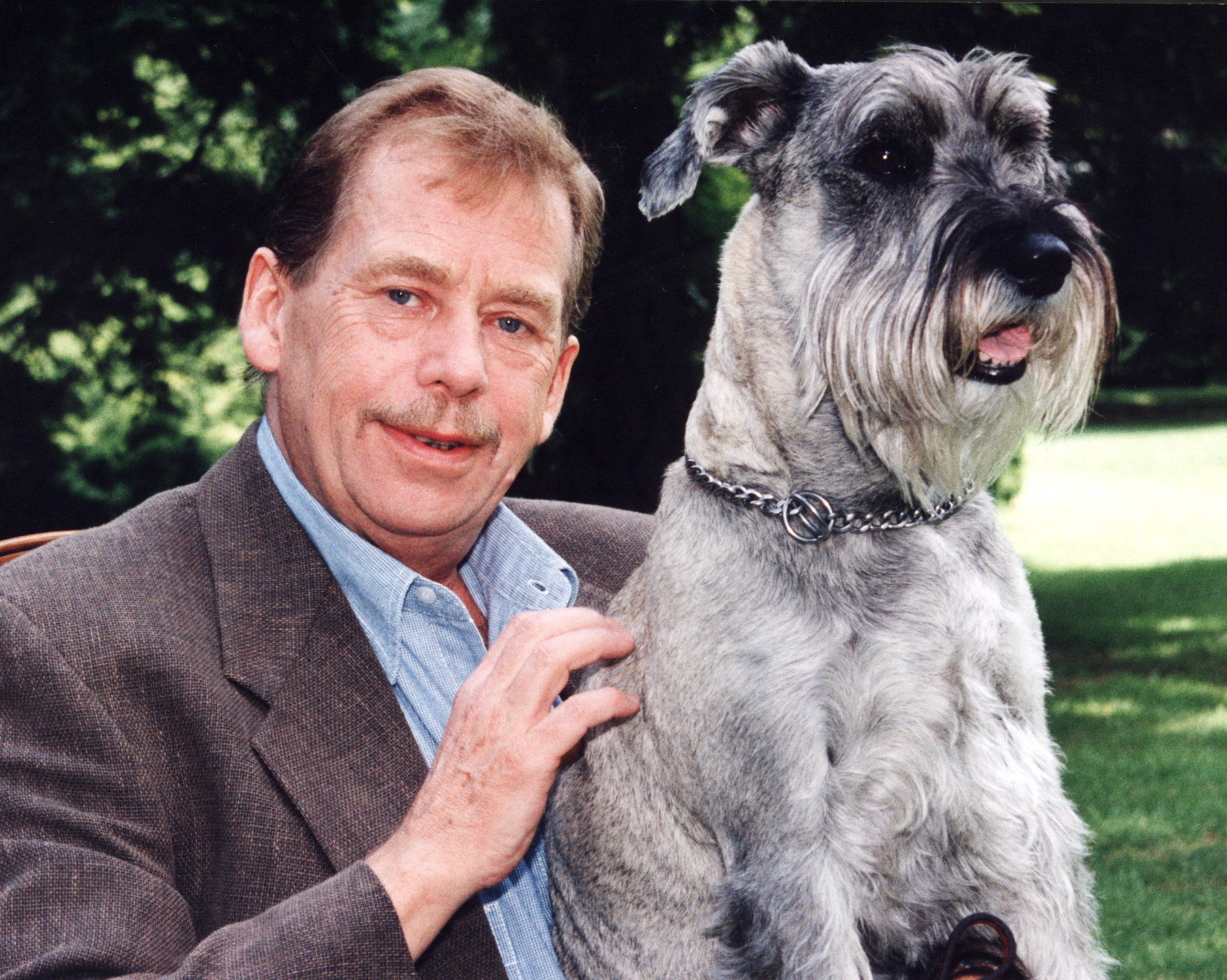 Václav Havel 1997-ben Gyula névre hallgató foxterrierjével, akit Horn Gyula magyar miniszterelnöktől kapott ajándékba