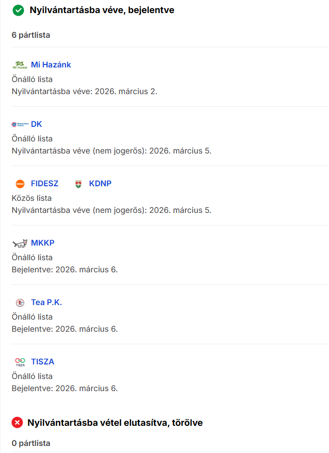 A Tisza Párt csak pénteken jelentette be a teljes listát –amin nagy meglepetés nincs, a párt ismert arcai és jelöltjei vagy jelöltaspiránsai szerepelnek rajta –, holott már első nap összegyűjtötték a jelöltjeik a szükséges aláírásokat.