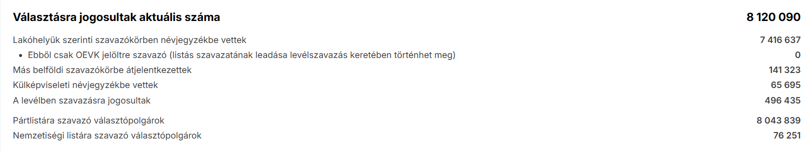 Csaknem 66 ezer magyart vettek eddig külképviseleti névjegyzékbe, ami rekord. Itt azokról a külföldön lévő magyarokról van szó, akiknek van magyarországi lakcímük, így egyéni jelöltre és listára is szavazhatnak az arra kijelölt helyeken.