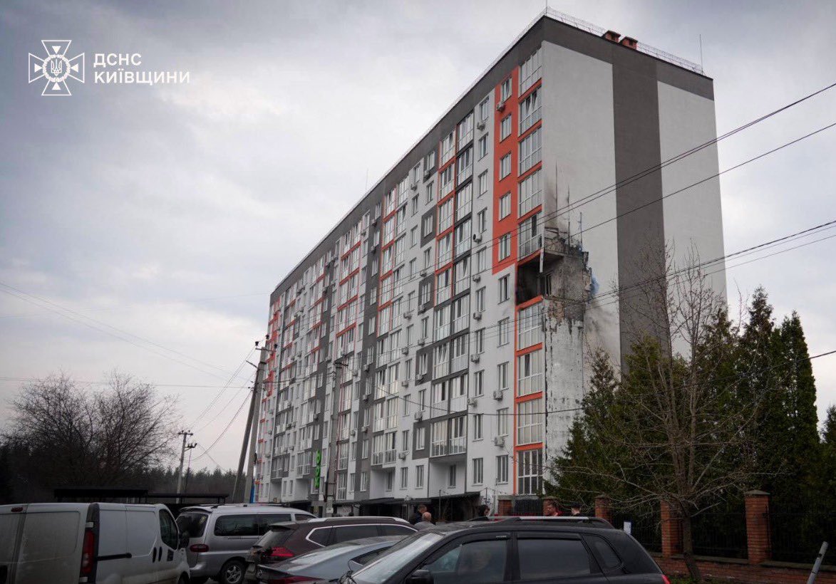 A Kijev megyei Obuhivban egy iráni gyártmányú Shahed drón csapódott egy többemeletes lakóépületbe, a romok alatt keresik a túlélőket. A környéken egy állatorvosi rendelő is megsérült, húsz állat pusztult el.