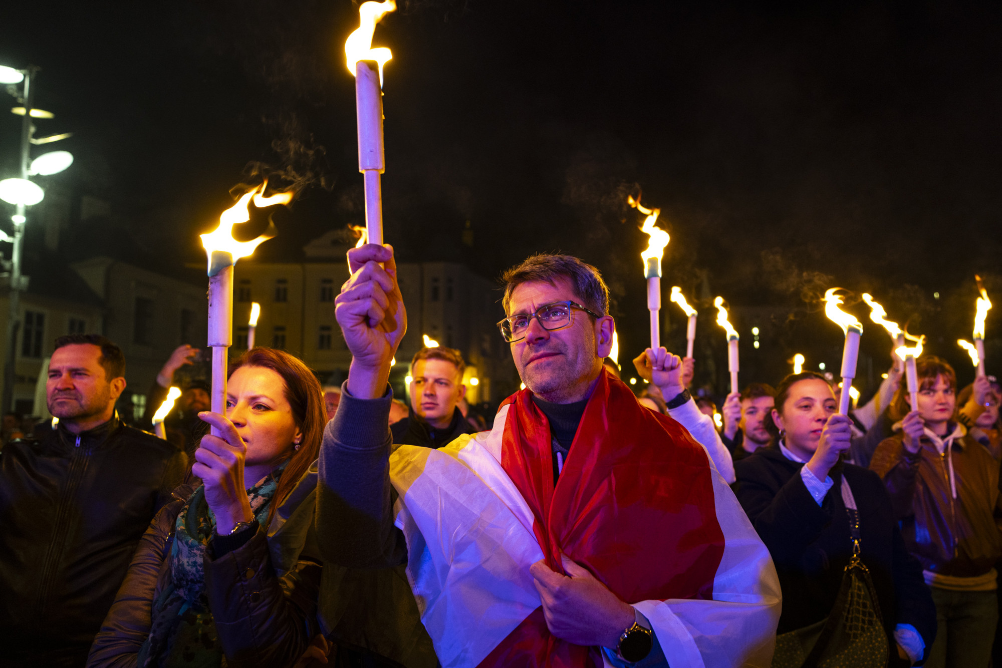 Kétellyel figyelik a tömeg egyik sarkában, ahogy egy férfi a tévének nyilatkozik. A propagandának? Nem érdemes szóba állni velük – pedig a francia közszolgálati televízió érdeklődik csak. Vannak itt német, és osztrák tévétől is, nemzetközi balhé lett a magyar választásból.