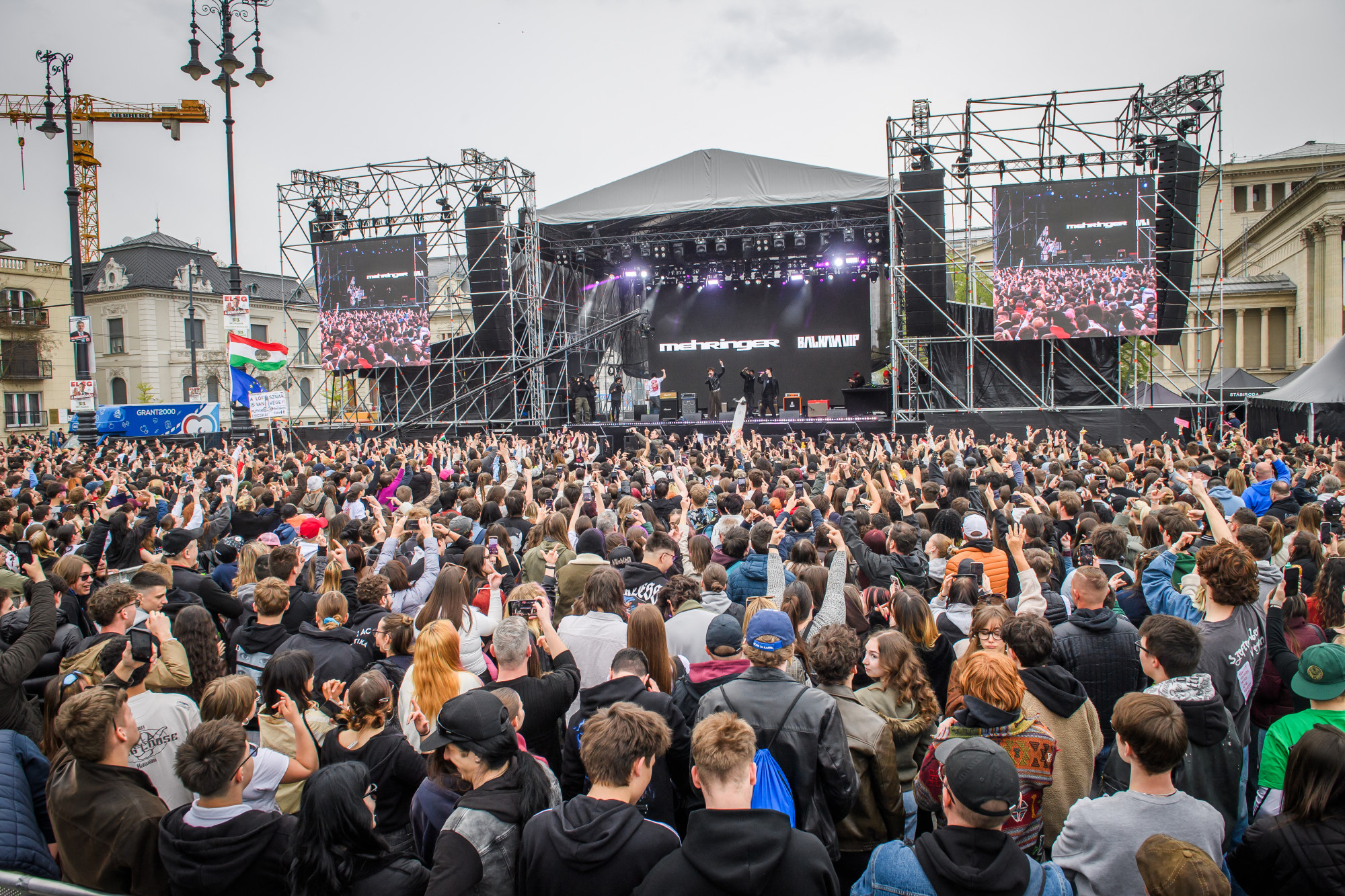 Beton.Hofi fellépése után a szervezők egy 2000-es évek eleji videót vetítettek le, abban Törőcsik Mari és Gáspár Győző közösen kampányolnak Magyarország európai uniós csatlakozása mellett. Ekkorra, a koncert kezdése után nagyjából egy órával megtelt a Hősök tere, valamint az Andrássy útnak és a Dózsa György útnak a térhez közeli szakaszai; ezt erősítik meg az élő közvetítés totálképei is. Később több olyan videót is levetítettek, amikben a fiatal Orbán Viktor beszélt demokráciáról és annak hiányáról, akkor hatalmon lévő politikusok mutyijairól. Nemcsak zenészek léptek fel, Vilmányi Benett szavalt, Petőfi Sándor Akasszátok fel a királyokat című versét mondta el.