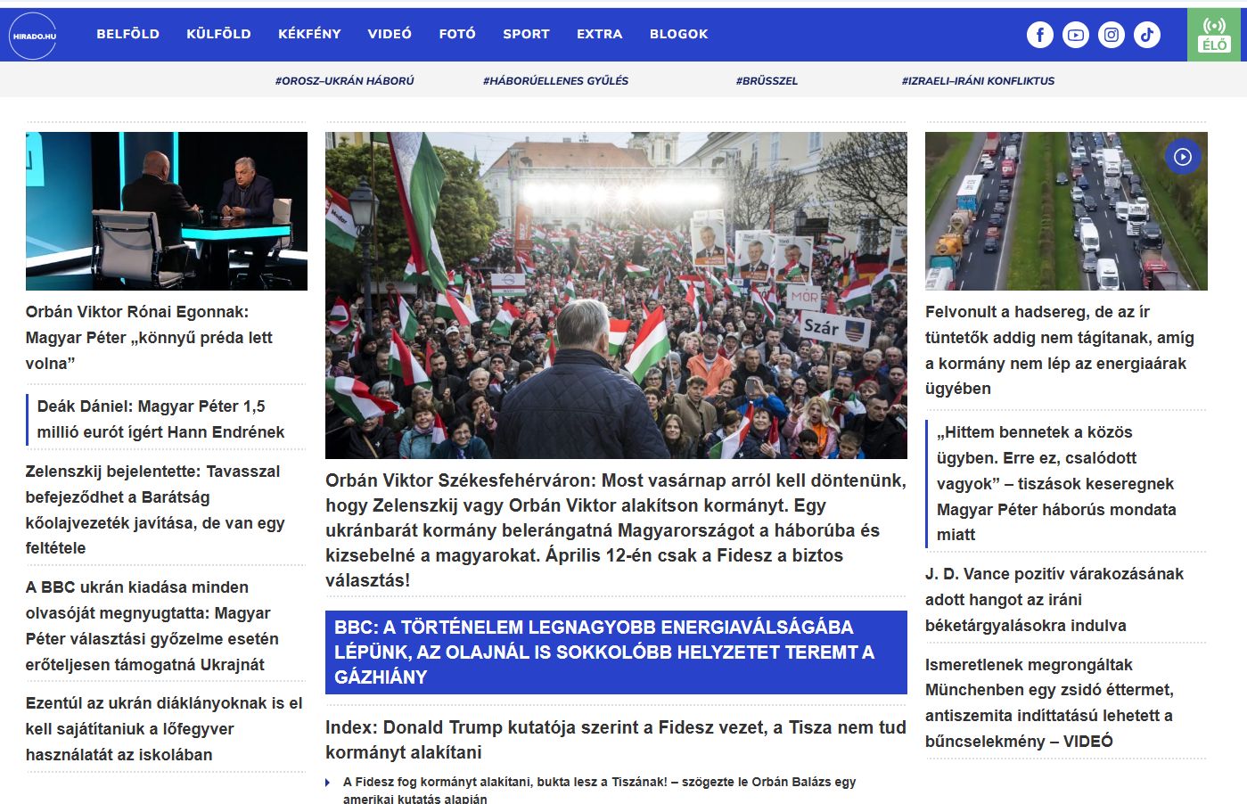 A délután 4 óta tartó „Rendszerbontó Nagykoncertet” a helyszínen több tízezres tömeg, a Szélsőközép csatornáján ebben a pillanatban épp 100 ezer néző figyeli. Akinek nem tűnt fel, hogy van ilyen rendezvény, az a közmédia: az MTI keresője se a fotók, se a hírek között nem találja a rendezvényt, a hirado.hu címlapja pedig így néz ki: