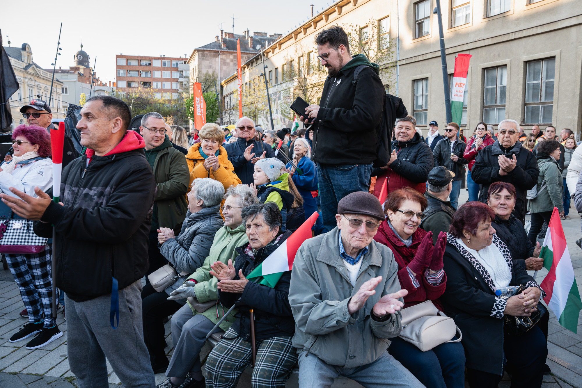Magyar Péter feketeruhások helyett tömeget vitt a győri utcákra. A legfeszültebb helyzet az volt, amikor valaki elájult a tömegben és orvost kellett hozzá hívni. Az új magyar pártrendszer első számú nyertese: a zászlóárus.