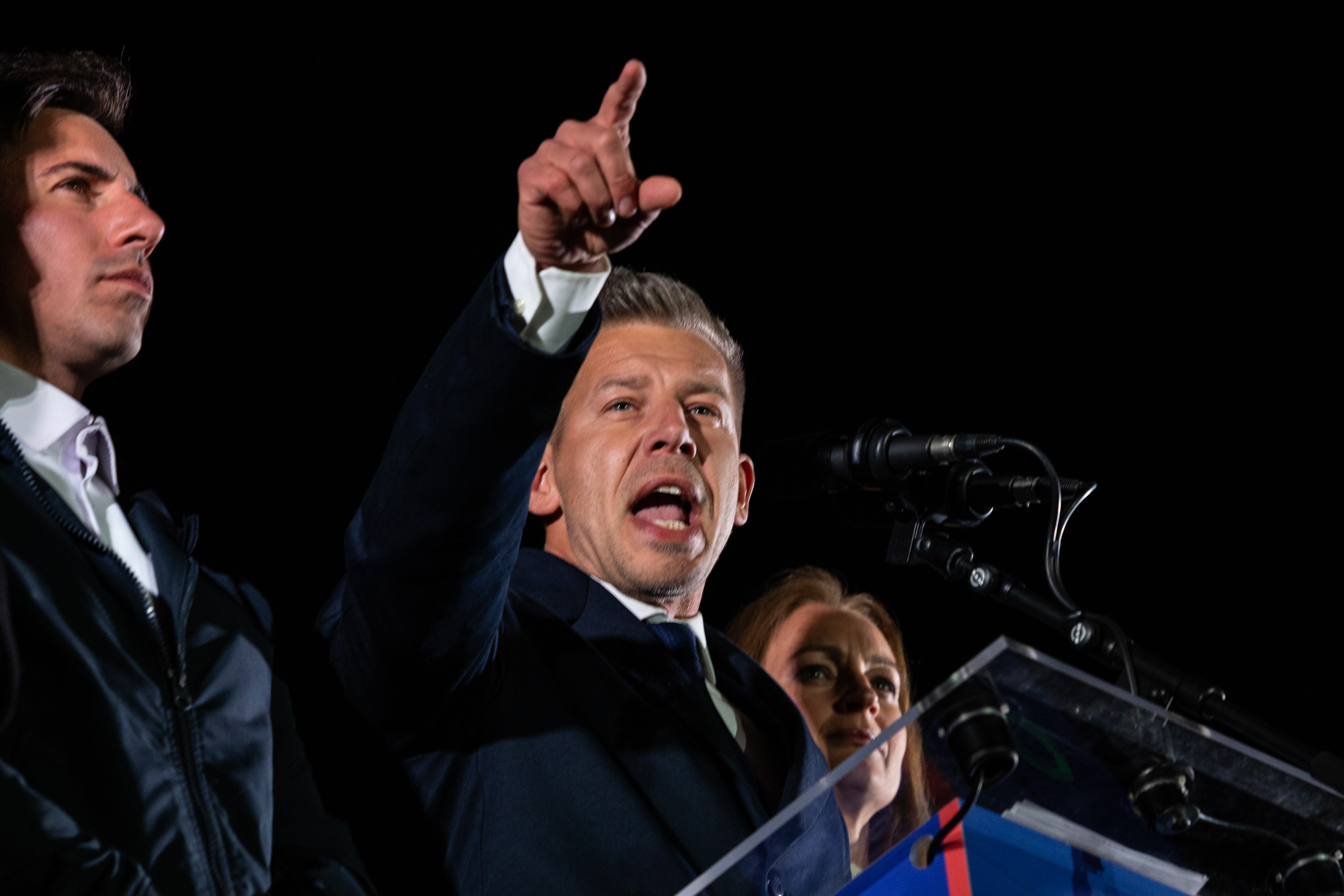 A Mi Hazánk eredményváróján egyre elkeseredettebb volt a hangulat, aztán jött Toroczkai László, és azt mondta, már az is nagy teljesítmény, hogy túlélték a Tiszát.