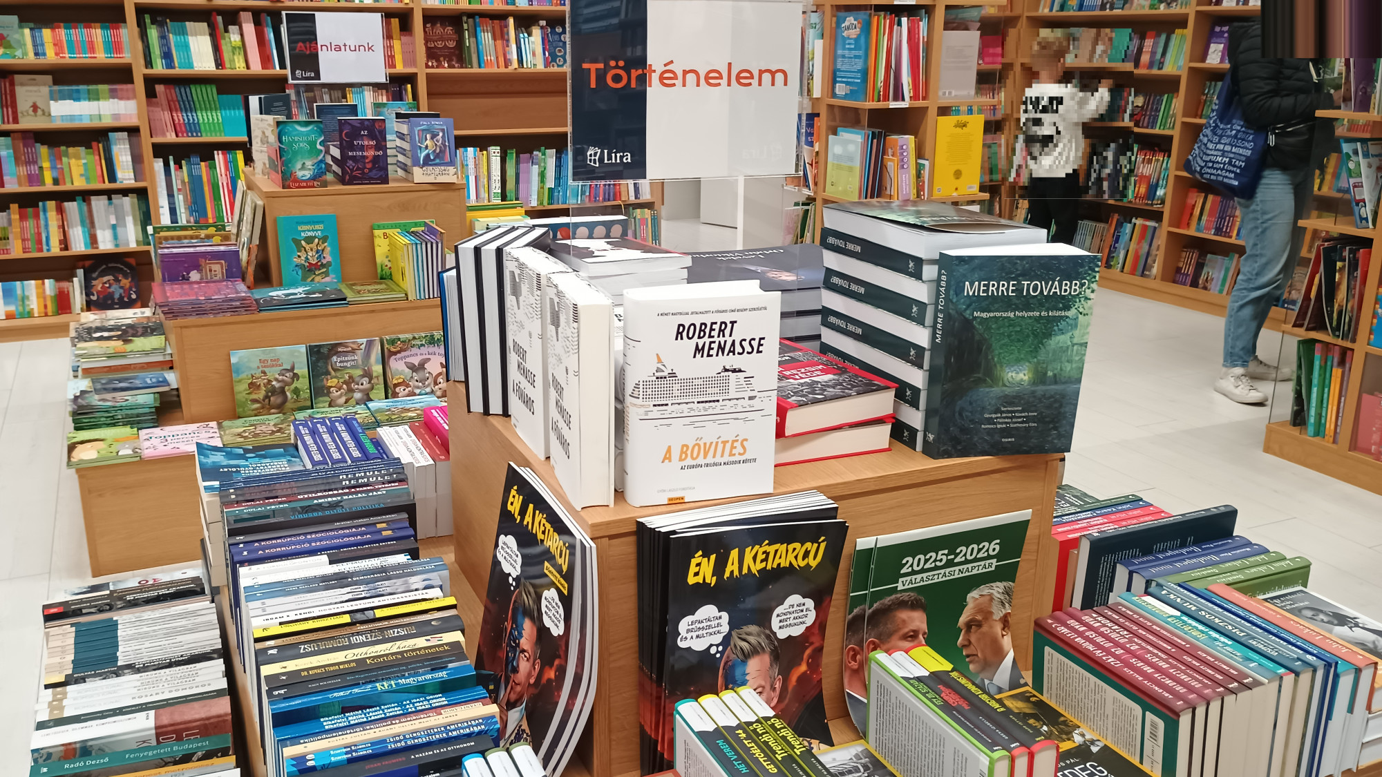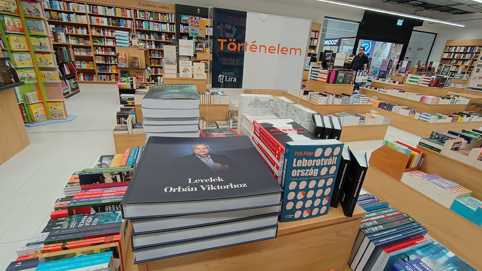 A Líra könyvkereskedés – aminek meggyűlt a baja az Orbán-rendszer homofóbtörvényével – most minden jel szerint tüntetőleg a történelem polcra halmozta fel az Orbán-rendszer politikai könyveit. A GOBUDA Mallban ez így néz ki: