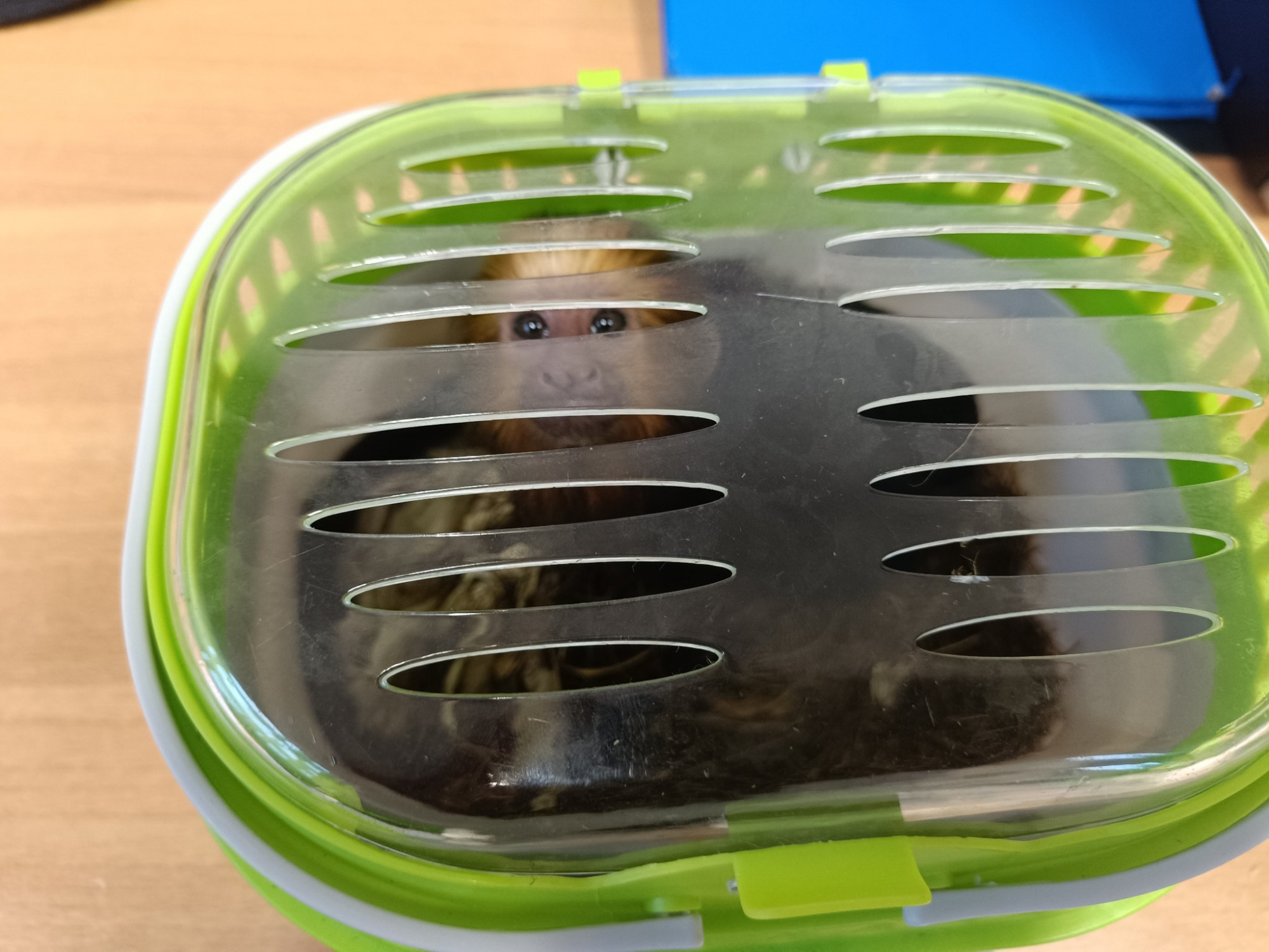 Csak akkor döbbentem rá, hogy mindkét főszereplőt ismerem, amikor Hanga Zoltánnal, az Állatkert szóvivőjével már a Pálmaház felé tartottunk. A kismajom nem más, mint az az aranyfejű oroszlánmajmocska, akit vámosok találtak idén januárban egy Moldovából érkező kisbuszban, egy egészen kicsi műanyag dobozba zárva.