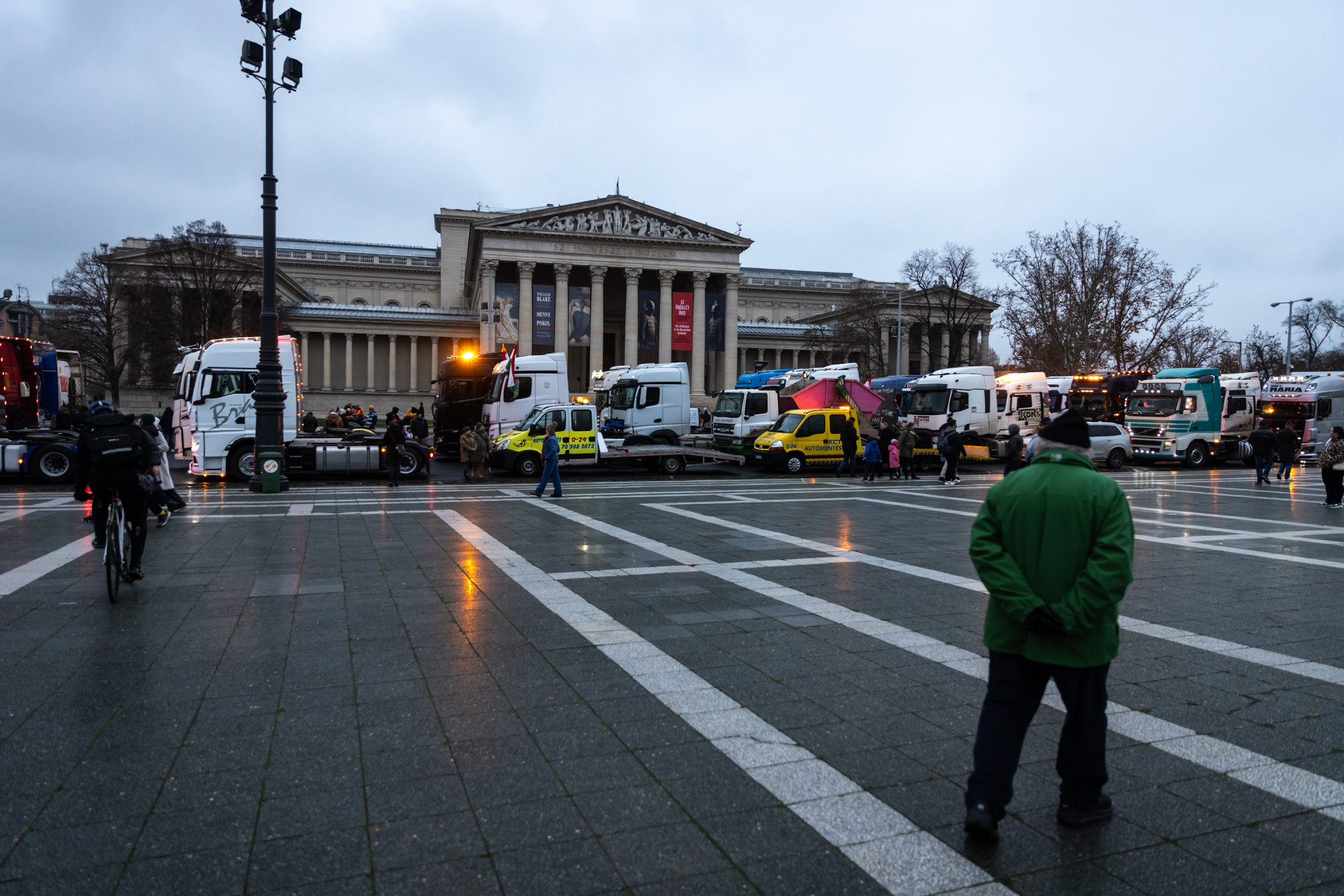 A növelni tervezett fuvardíjak ellen demonstrálnak. A budakalászi Auchan parkolója már elesett.