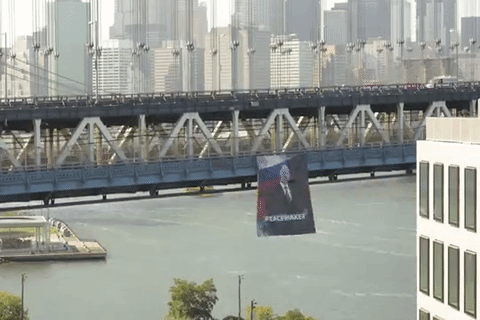 Hatalmas Putyin-molinót függesztettek ki a Manhattan hídra New Yorkban